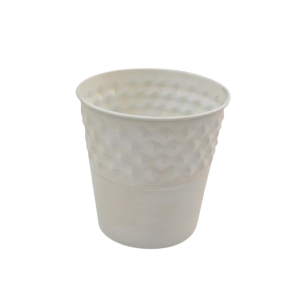 This is a stylish, lightweight waste bin with a contemporary design. The bin features a glossy red exterior with a diamond-patterned texture, adding a touch of elegance to its functional purpose. The interior is a smooth, matte gray finish, offering a contrast to the vibrant outer surface. Its compact, tapered cylindrical shape makes it ideal for use in small spaces like offices, bedrooms, bathrooms, or under desks.